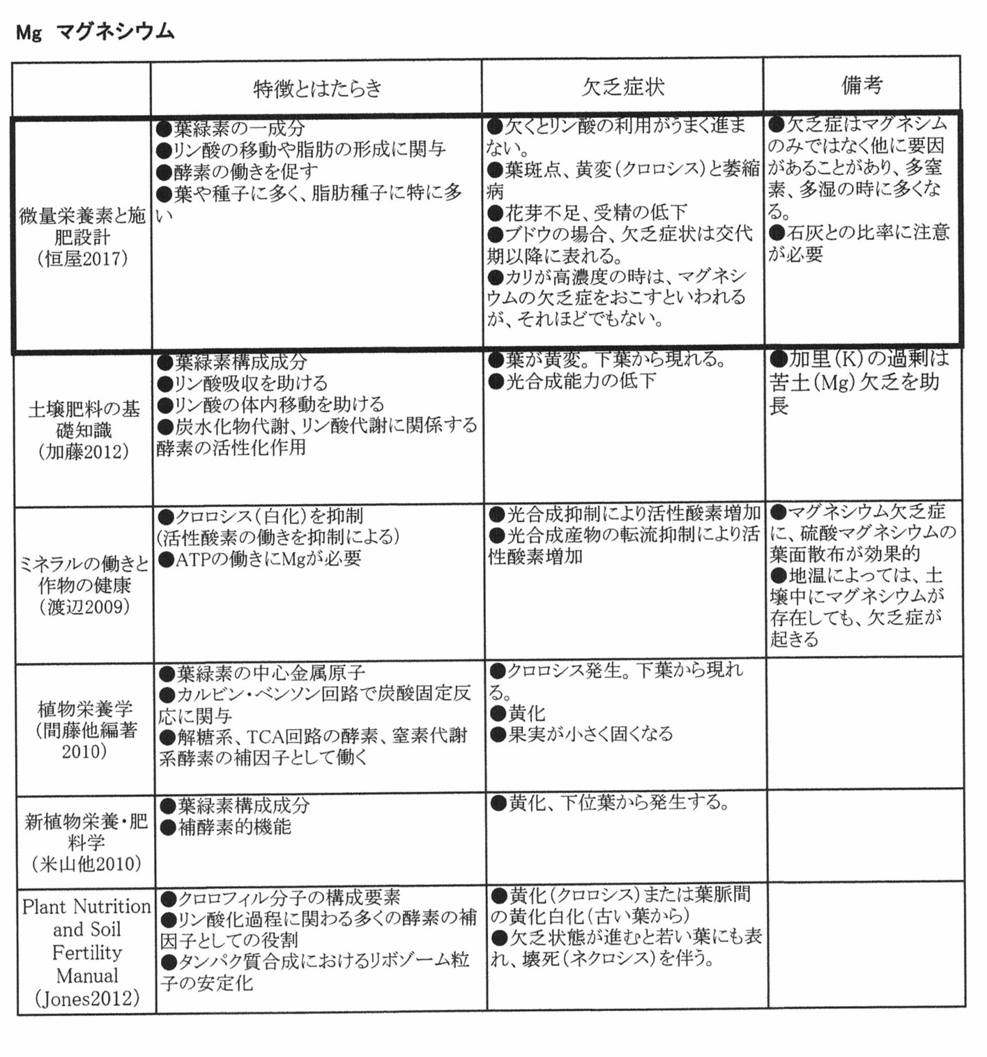 ・渡辺和彦. 2009. 「ミネラルの働きと作物の健康」. 農村漁村文化協会.